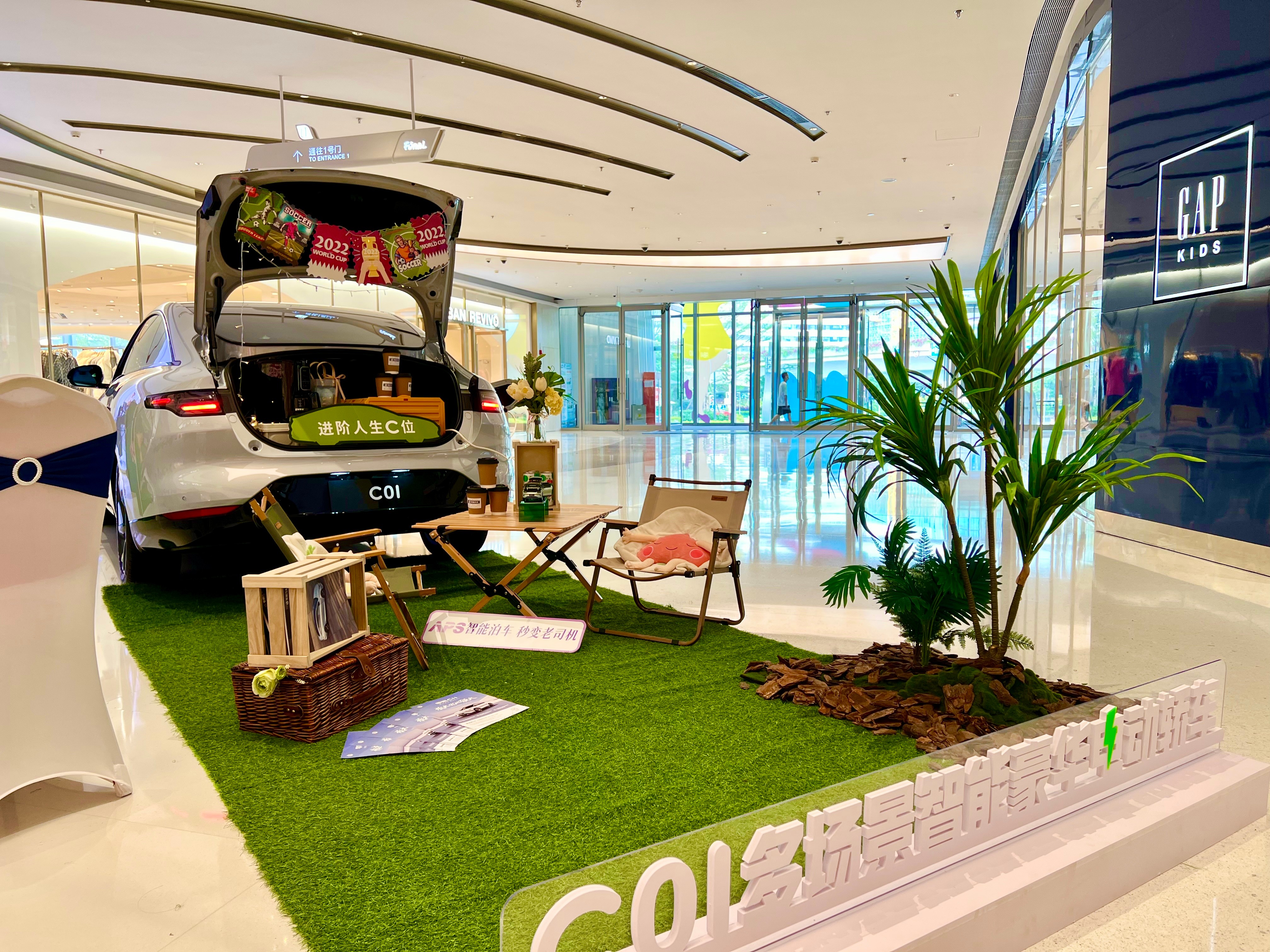 開業(yè)當天正值世界杯足球賽期間,現(xiàn)場準備了DIY足球、背景板等供顧客涂鴉與合影。另外還有精致的餐點和豐厚的訂車禮品,有許多顧客到店體驗,不乏有現(xiàn)場下訂成為零跑汽車準車主的。